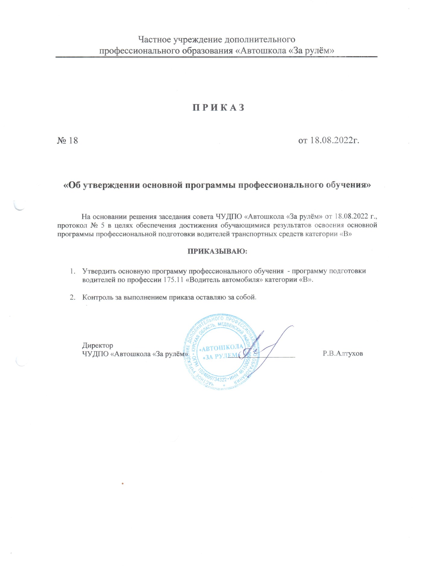 ЧАСТНОЕ УЧРЕЖДЕНИЕ ДОПОЛНИТЕЛЬНОГО ПРОФЕССИОНАЛЬНОГО ОБРАЗОВАНИЯ "АВТОШКОЛА "ЗА РУЛЁМ"