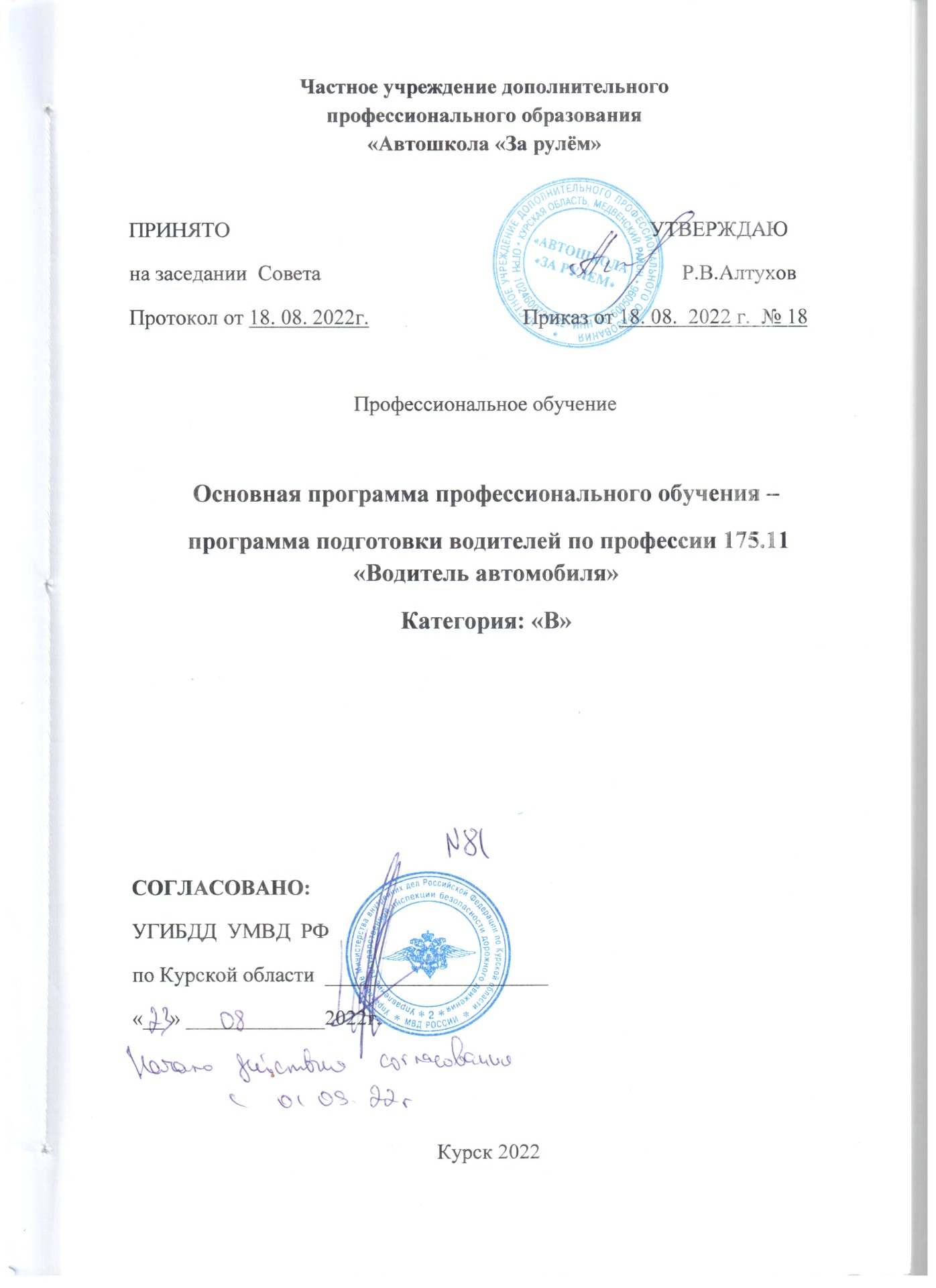 - Основная программа профессионального обучения по профессии водитель автомобиля категории "В"